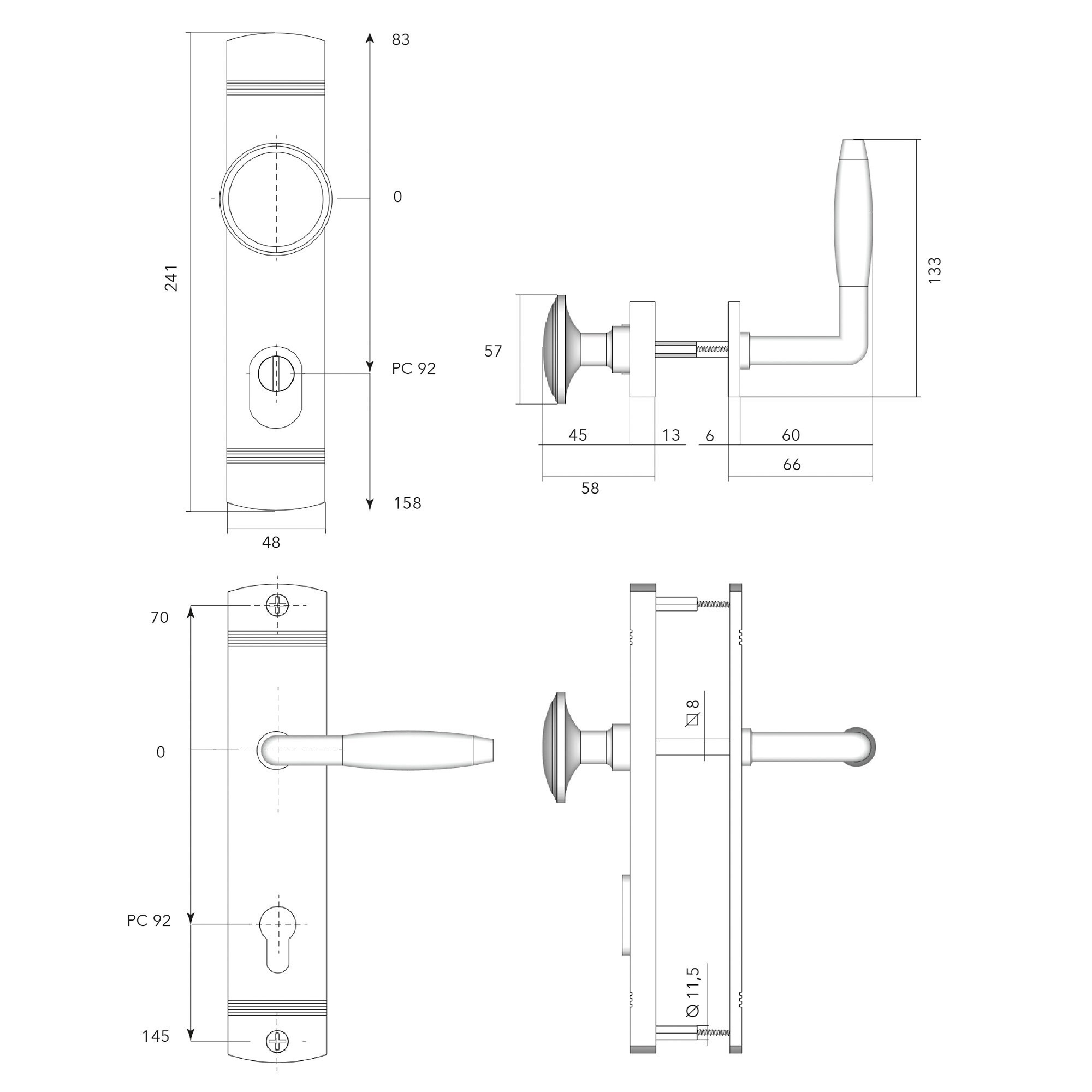- Profielcilinder afstand: 92mm