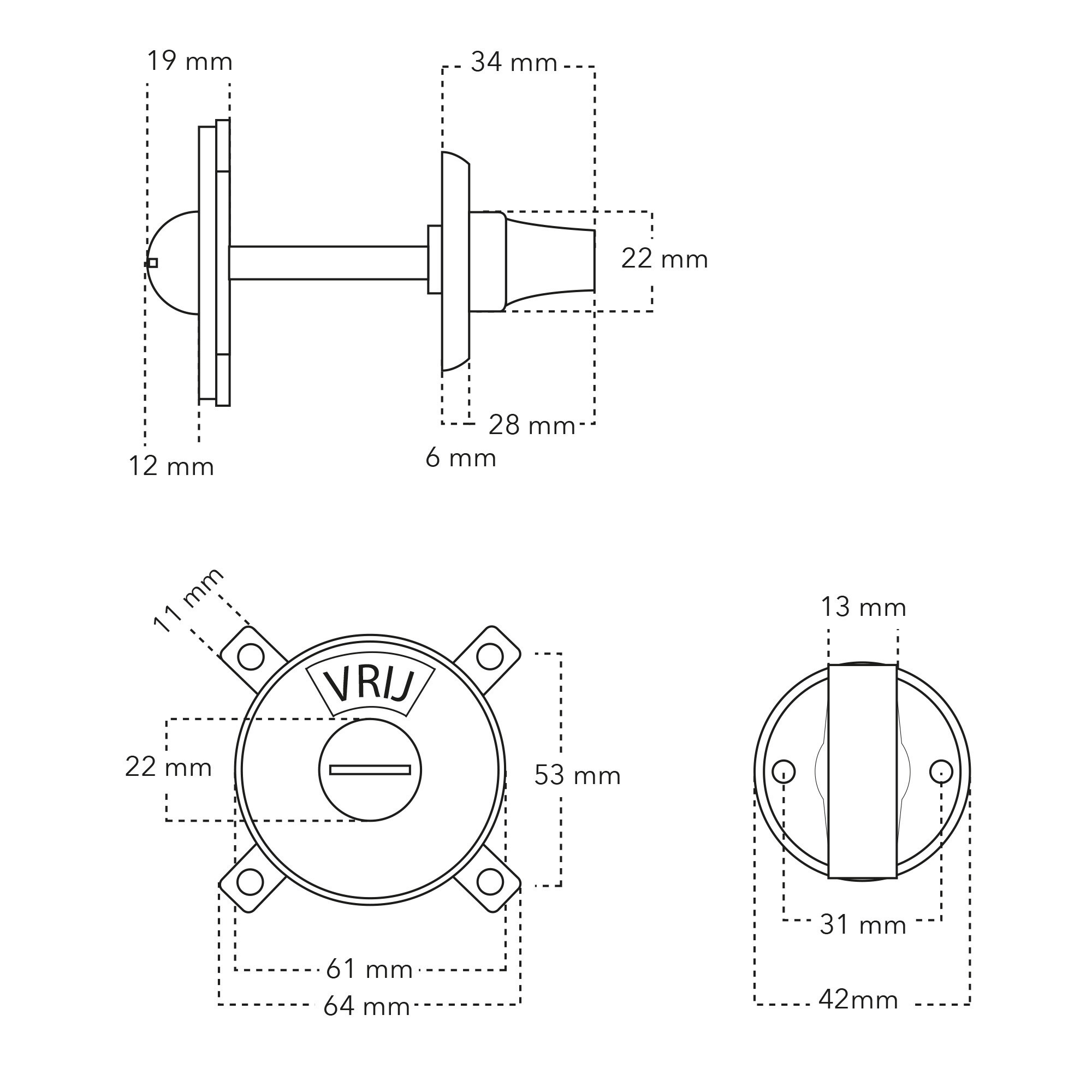 De slotstift zit vast aan één zijde en is geschikt voor deuren van 35-42mm. Dit WC slot is niet geschikt voor dikkere deuren of andere stiftmaten.
